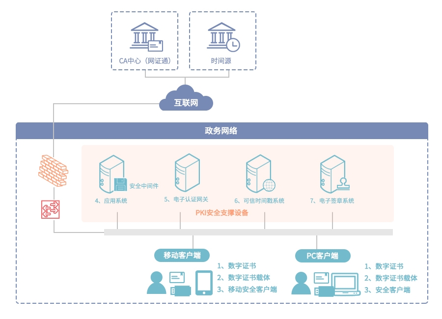 通過引入第三方CA電子認證技術與產品,搭建可靠的電子認證安全支撐體系,為OA辦公系統提供安全可靠的電子認證服務,解決各種身份認證授權問題、信息數據安全和電子公文的法律效力等問題,實現OA辦公審批全流程無紙化,提高政府對內、對外的服務效率,為“互聯網+政務服務”的實現提供強力踏實的基礎支撐。